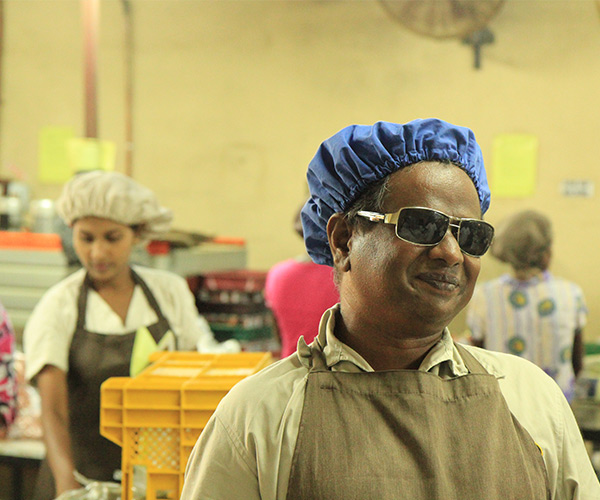 MA’s Kitchen employees differentially abled persons in various positions in the company. Meet Lalith (pictured to the right), he has been a loyal and dedicated employee for over 20 years. Although Lalith is blind, his contribution is valued and has this allowed him to a have a full-time job and support his family in a country where disability is a huge barrier to employment.